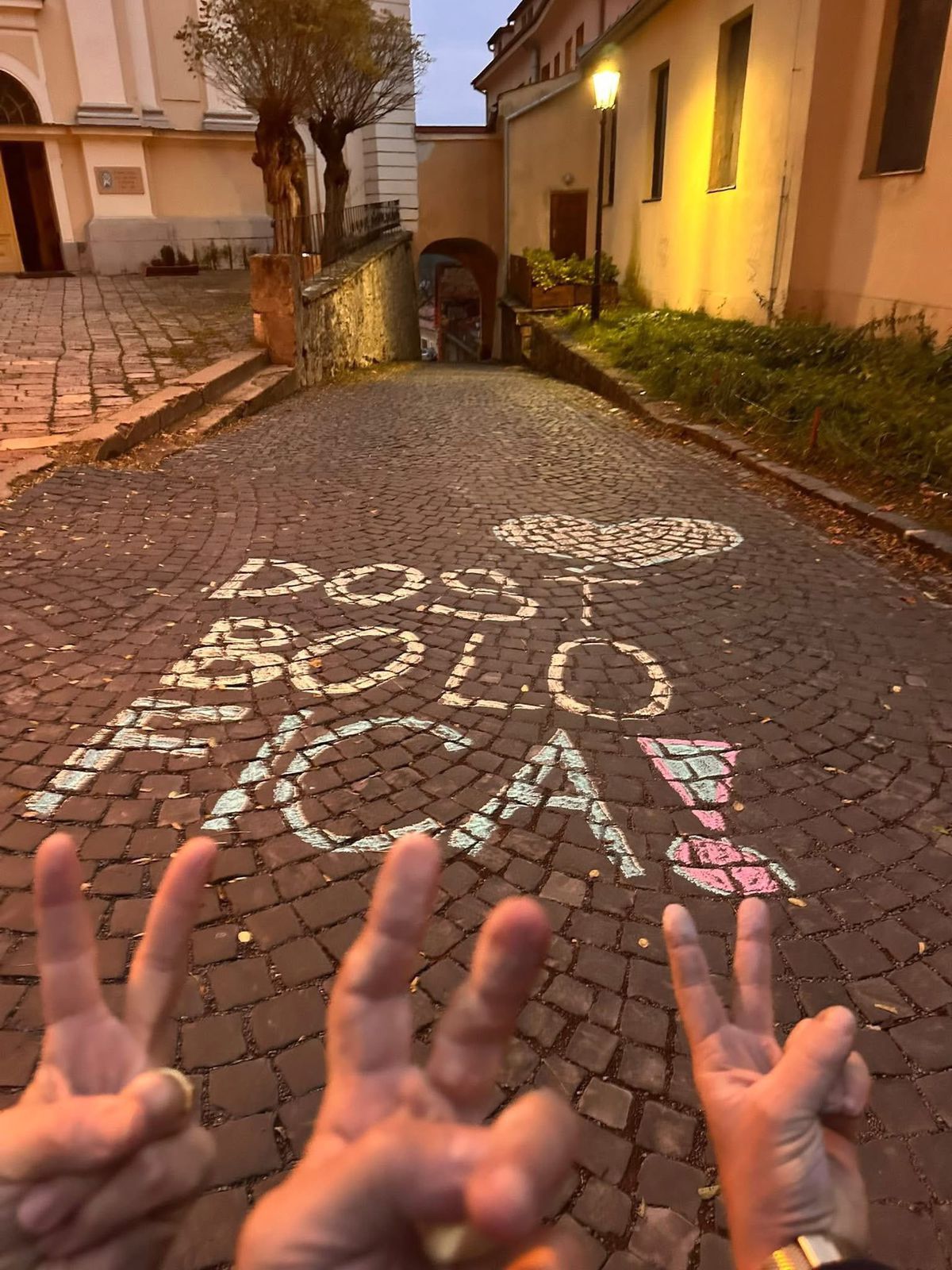 Ešte pred jeho príchodom sa však pred školou objavili kriedové nápisy ako „Dosť bolo Fica“ či „Ako chutí Putinov ko..t?“, doplnené o srdce v ukrajinských farbách.